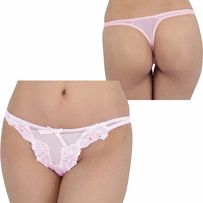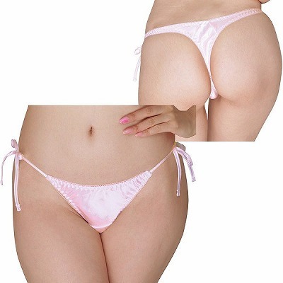 光沢サテン脇紐Tバック ピンク ピンク