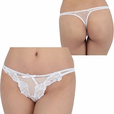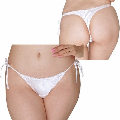 光沢サテン脇紐Tバック ホワイト ホワイト