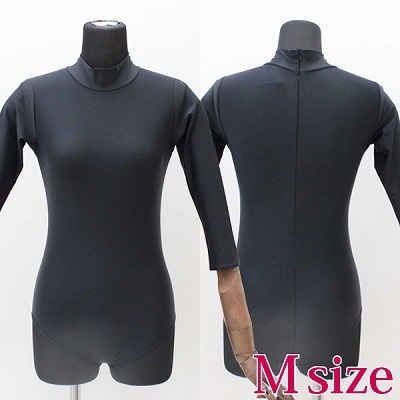 七部袖丈ハイネックレオタード単品 M ブラック