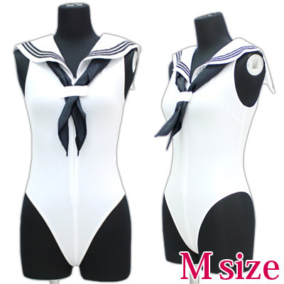 セーラーノースリーブレオタード 白 M ホワイト