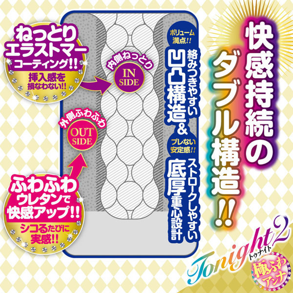 前作「トゥナイト」に続き、肉厚なふわふわウレタンが包み込む極ふわverのオナホ「トゥナイト2」が登場。